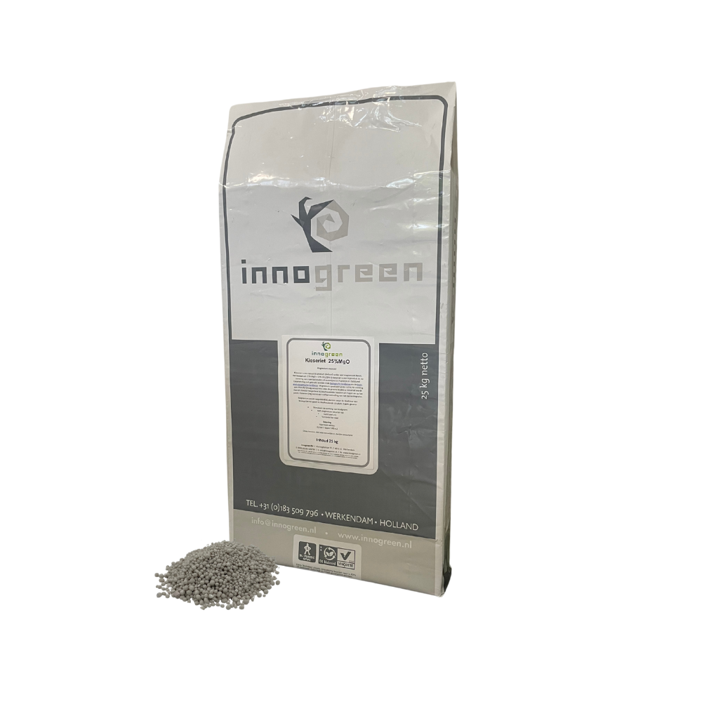 Magnesiummeststof (25% MgO) met zwavel. Voorkomt en verhelpt magnesiumgebrek in gazon en tuin. Dosering: 3-5 kg per 100 m².